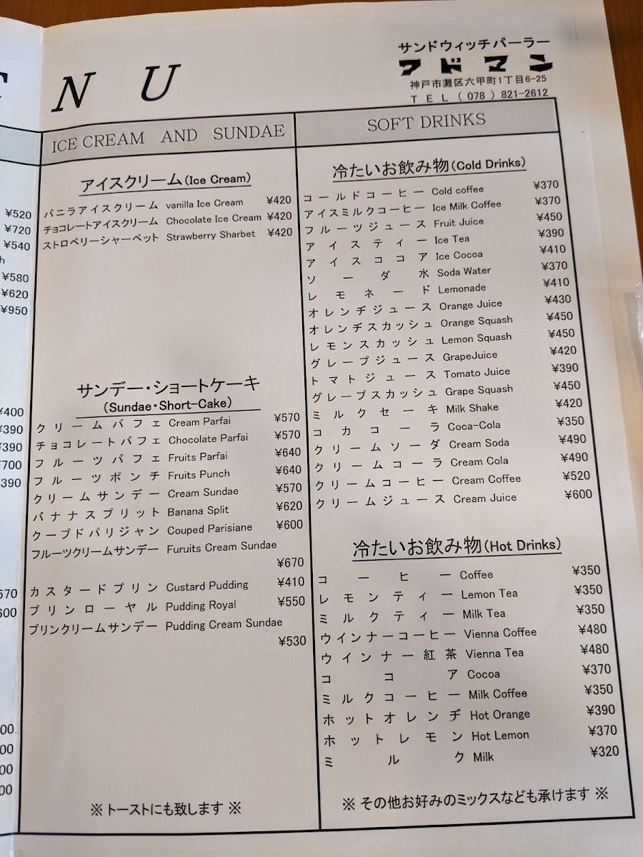 Welcome to Cafe Adoman, a charming establishment nestled in the heart of Kobe's Nada Ward. Renowned for its nostalgic ambiance, this cafe invites you to unwind with a diverse menu that delights the senses.